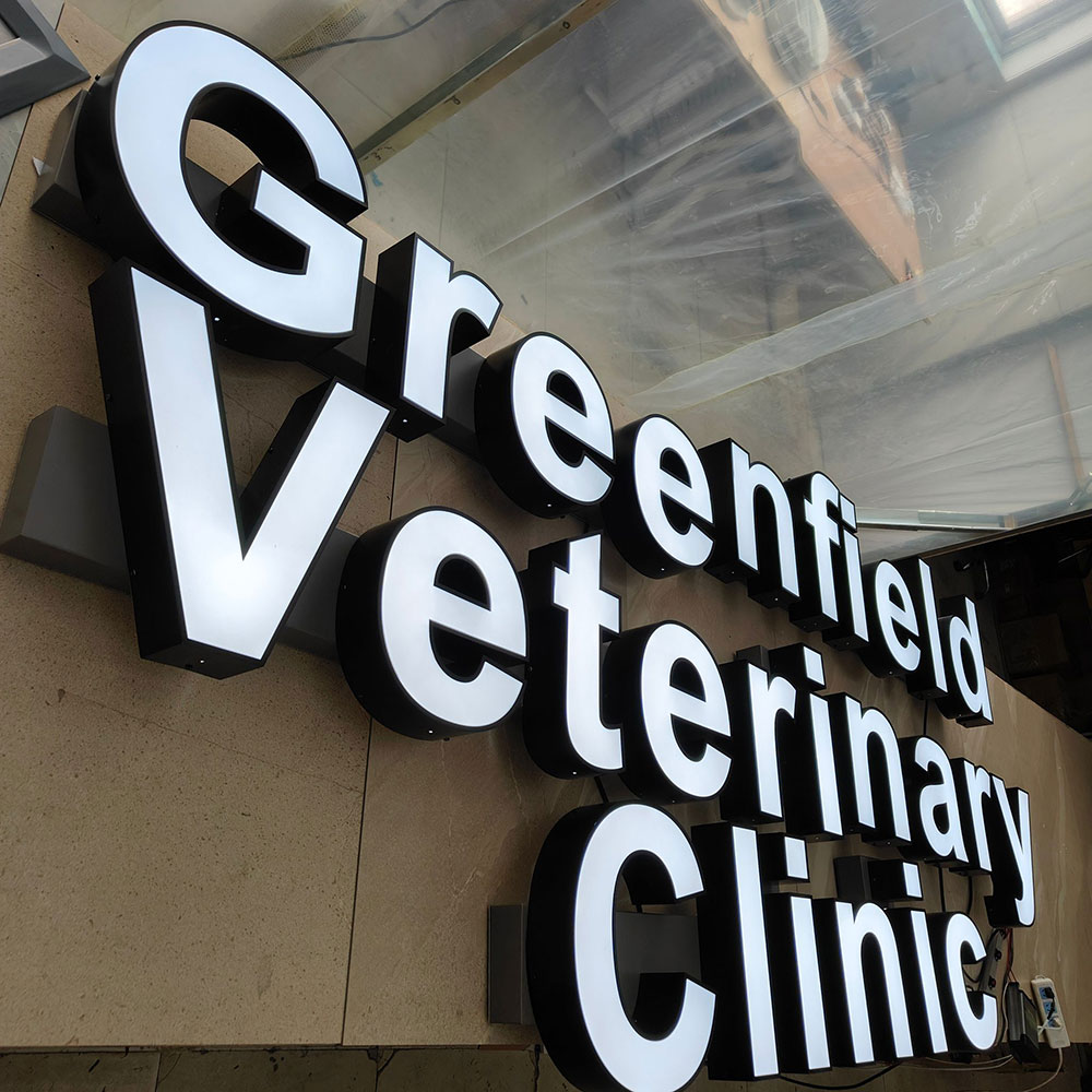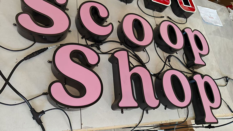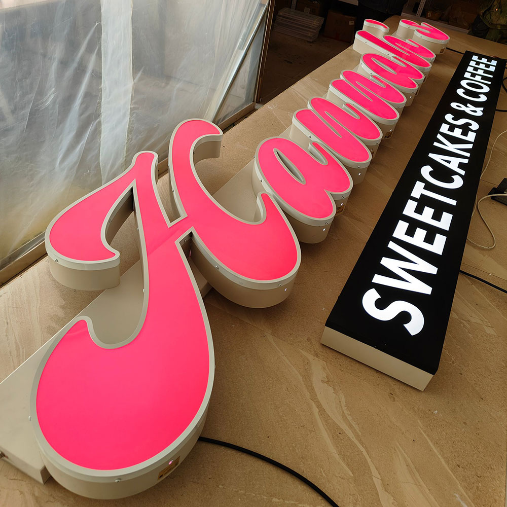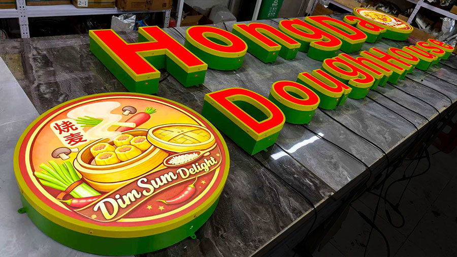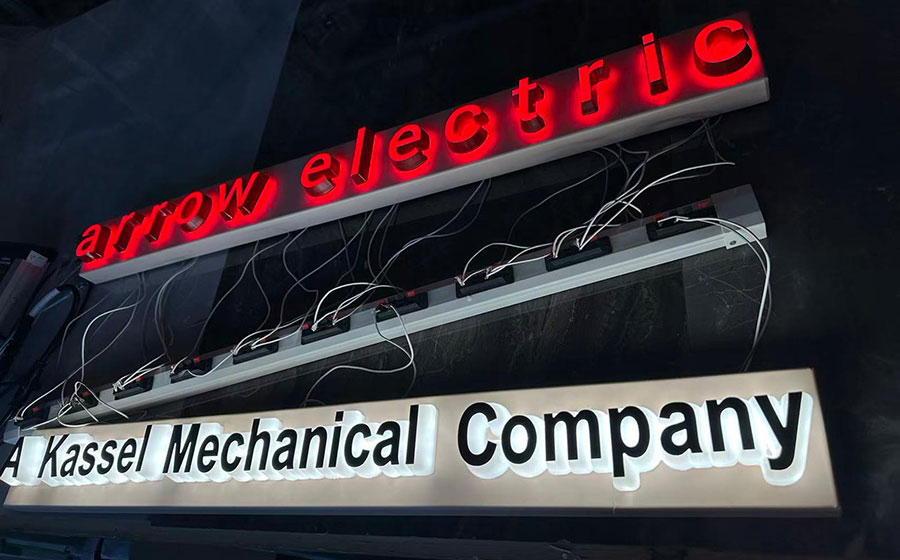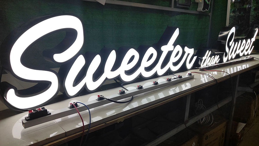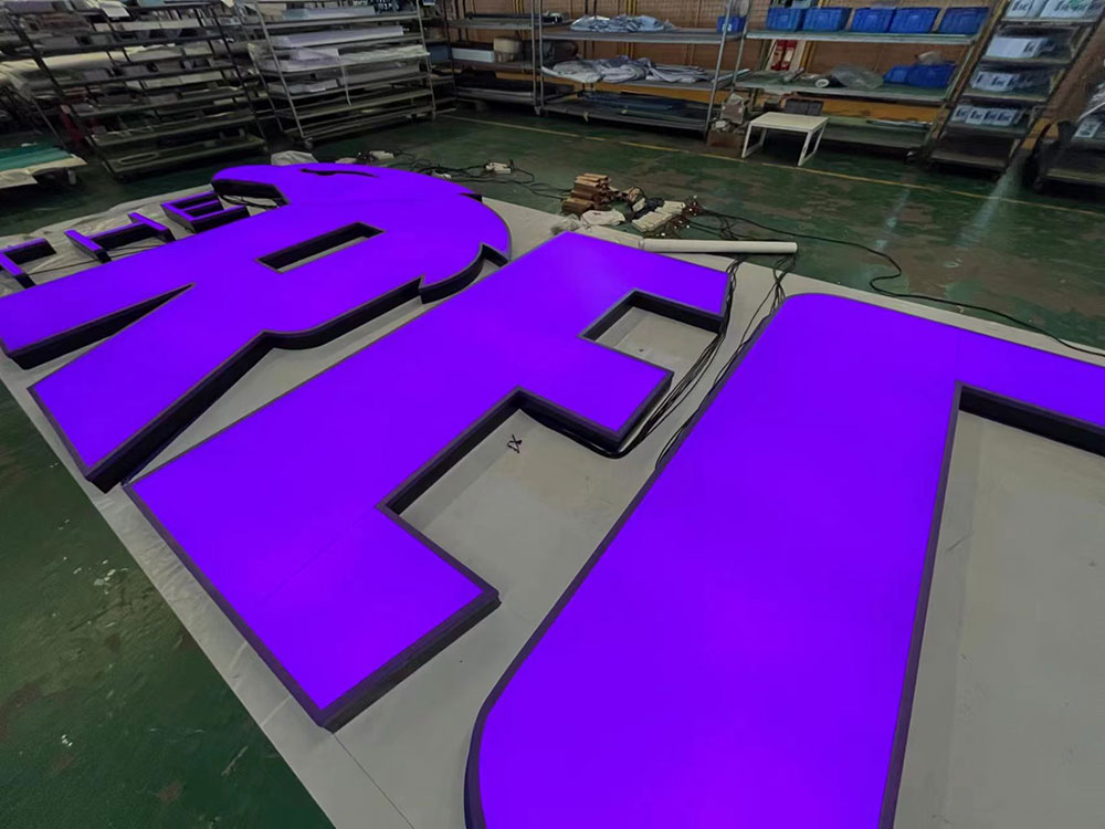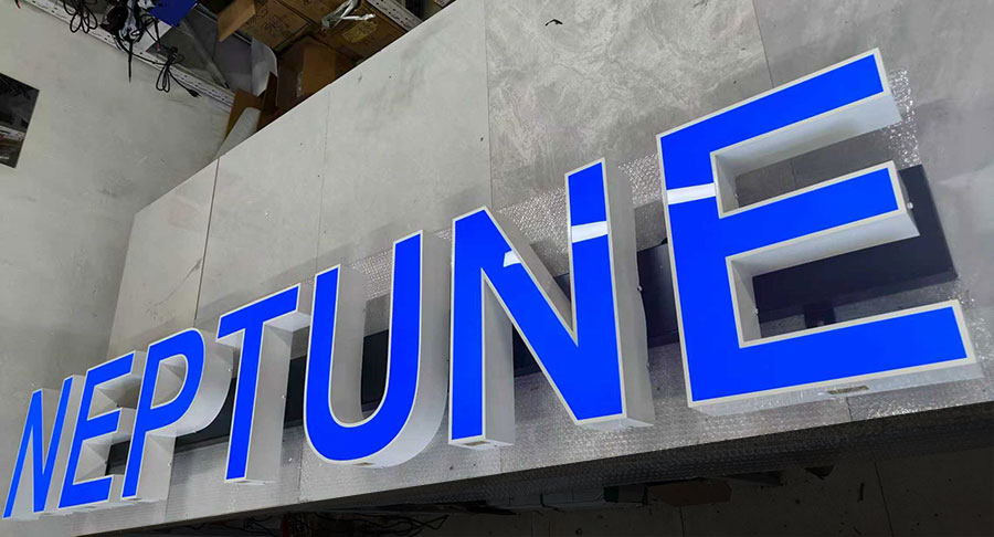 Face Lit Channel Letters, also known as Front Lit Channel Letters or illuminated Channel Letters, are three-dimensional signage constructed with a translucent face , with LED lights installed inside them. When the LED lights are turned on, Face lit channel letters create a vibrant glow that illuminates the letter’s face.
