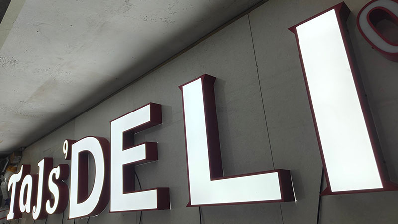 Face lit Channel Letter Signs are made of materials such as Aluminum/Stainless Steel, Acrylic and LED lights. These signs are durable and do not rust.